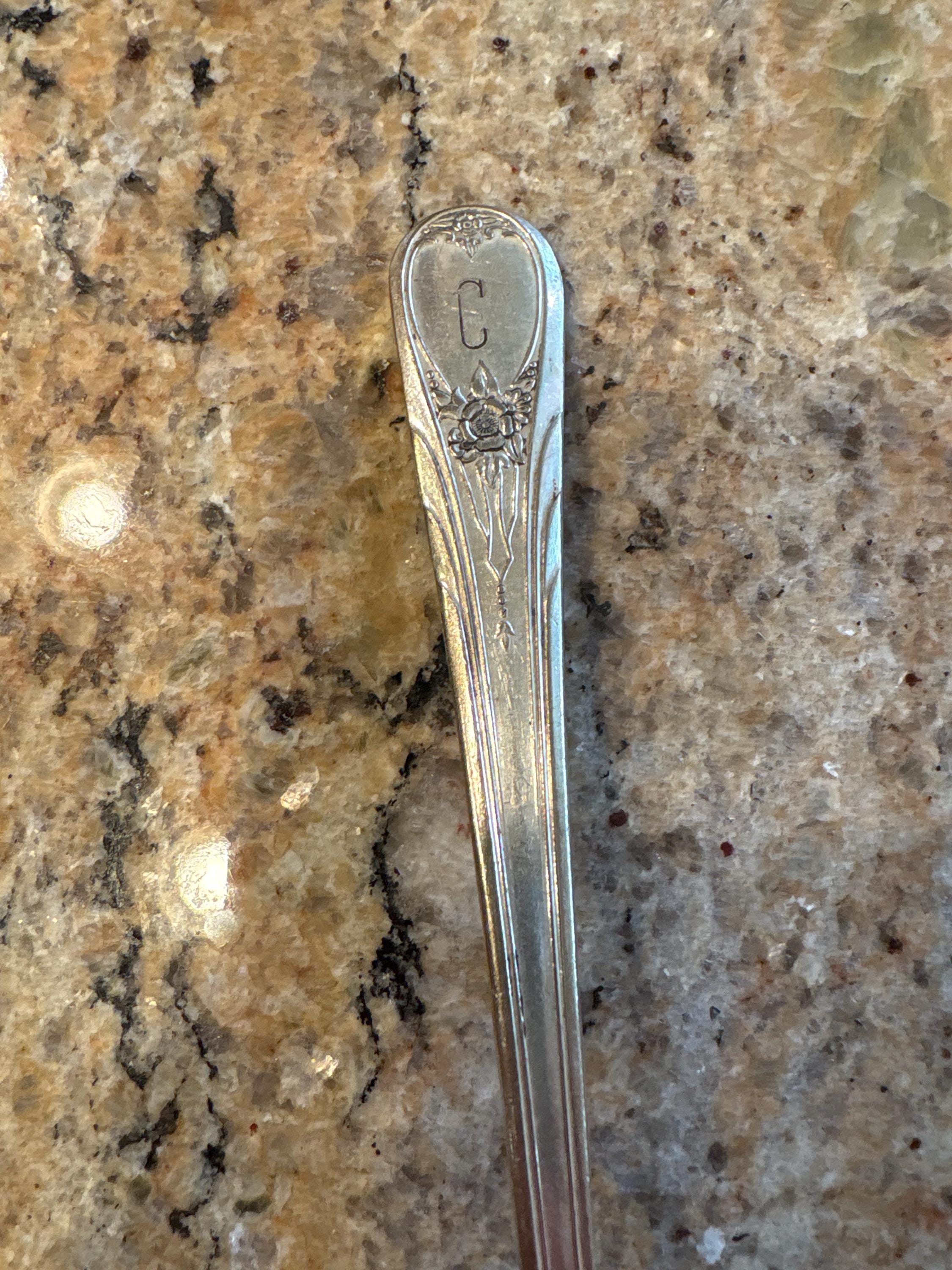 vintage fork monogrammed initial c newport silverplate 1946 sears roebuck dinner fork etched letter c floral pattern silver plated flatware